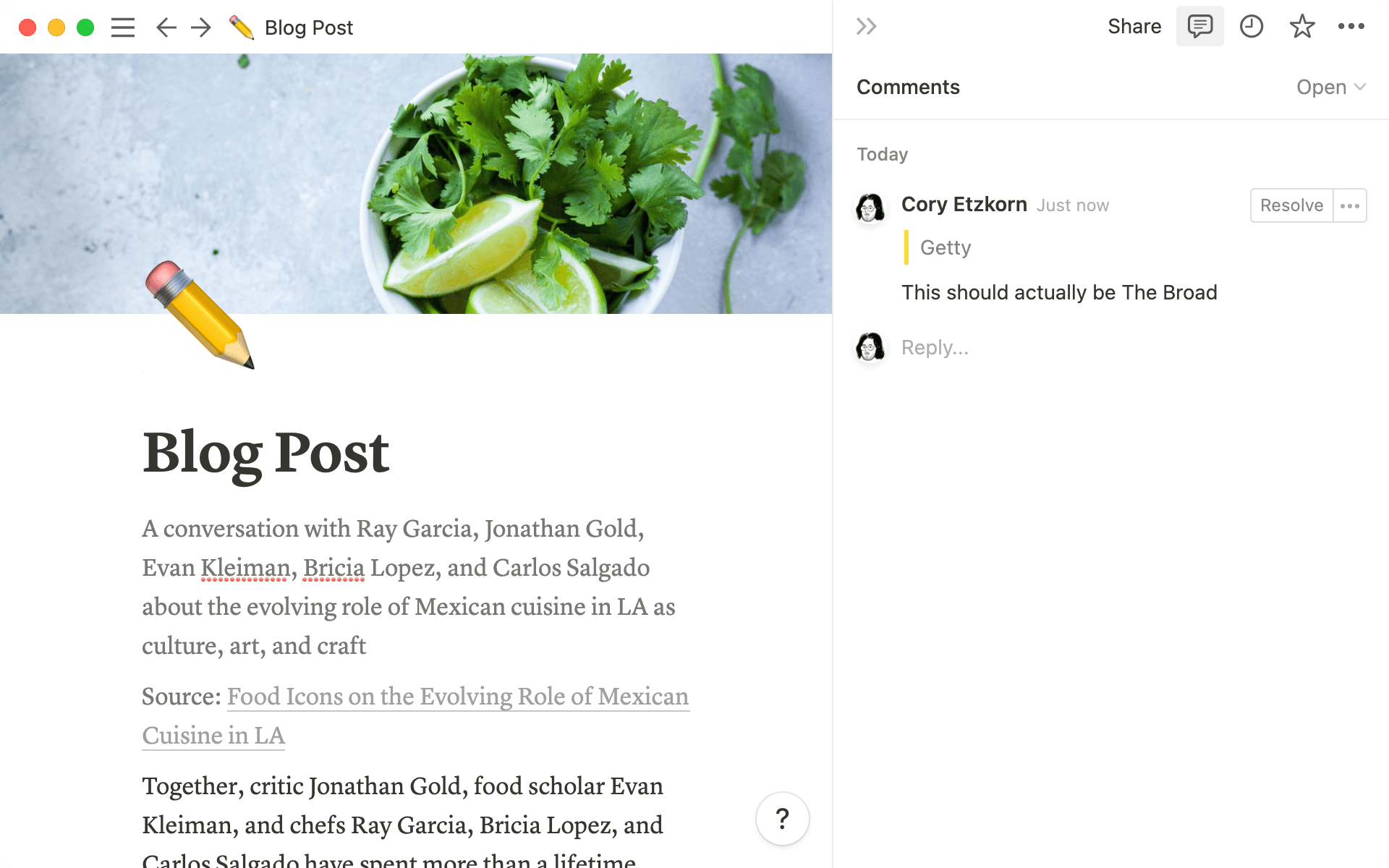Demandez les avis de vos parties prenantes, discutez de vos objectifs trimestriels, et faites avancer les projets en laissant des commentaires sur vos notes et vos documents. Les commentaires sont maintenant plus visibles, plus faciles à découvrir.