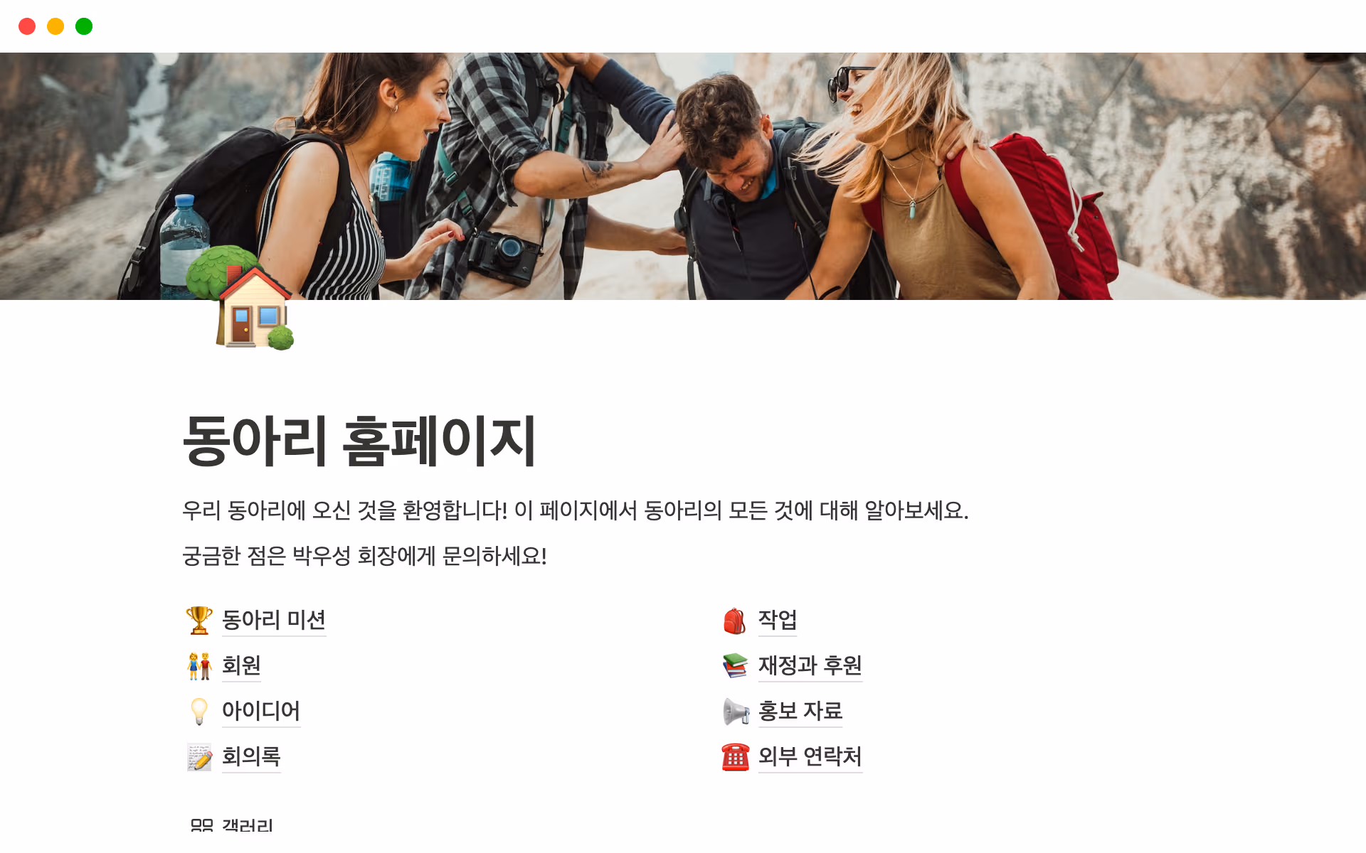School isn't just about school these days — if you're running a club or managing a group project, this template can help you capture all of your team's knowledge. You can keep your mission statement, tasks, and sponsorship apps neatly organized in this homepage. Share it with current and future team members so they can find everything they need to push projects forward.